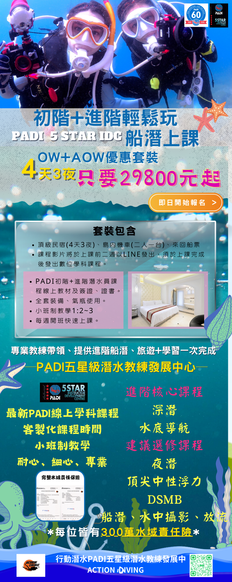 是否好多次都幻想能徜徉在海裡,體驗精彩萬分的水下冒險,這個課程就是最好的開始!
